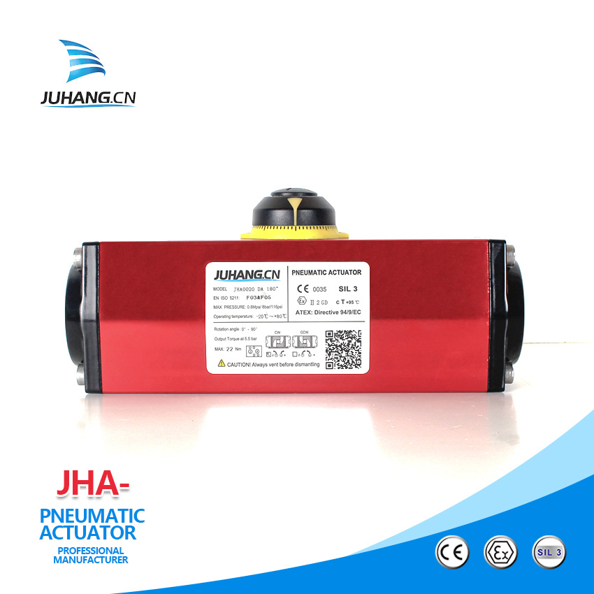120 135 180 డిగ్రీ న్యూమాటిక్ యాక్యుయేటర్, వివిధ కస్టమర్ల డిమాండ్లకు అనుగుణంగా సర్దుబాటు చేయబడుతుంది. ప్రయాణ కోణం: 0°-180°, +-5° కోణీయ స్ట్రోక్ సర్దుబాటు.
